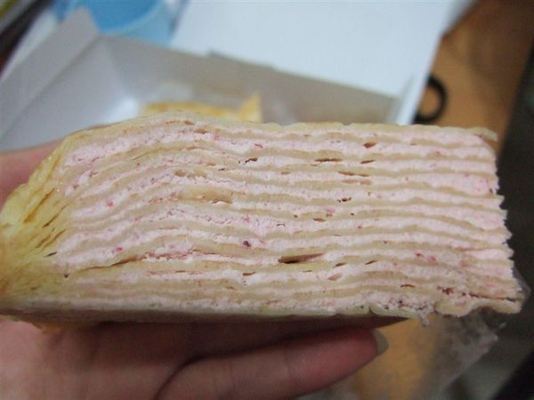 訂了好久的北海道千層蛋糕我訂了奶茶,牛奶,還有草莓餅皮其實應該都很酥的!可是因為小冰箱沒辦法冰冷凍的所以有點軟~"~奶茶有點甜,是這三個最不喜歡的冏草莓的真的是太棒了有新鮮草莓的餡料而且很綿密牛奶的很濃,雖然其實味道並沒有像草苺那麼明顯可是我覺得還挺好吃滴!據同事說栗子也很好吃耶~下次想來訂訂看栗子跟夏日限定的哈密瓜